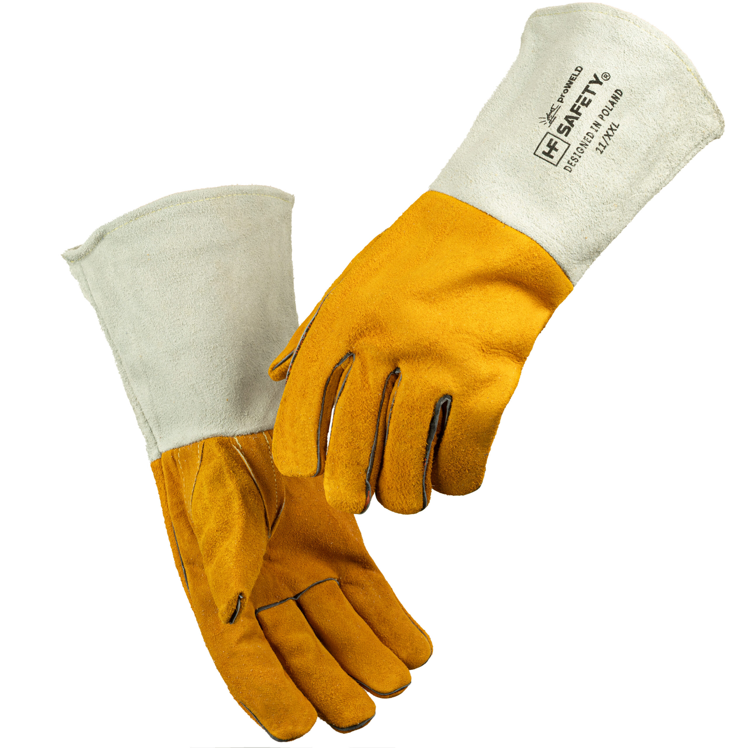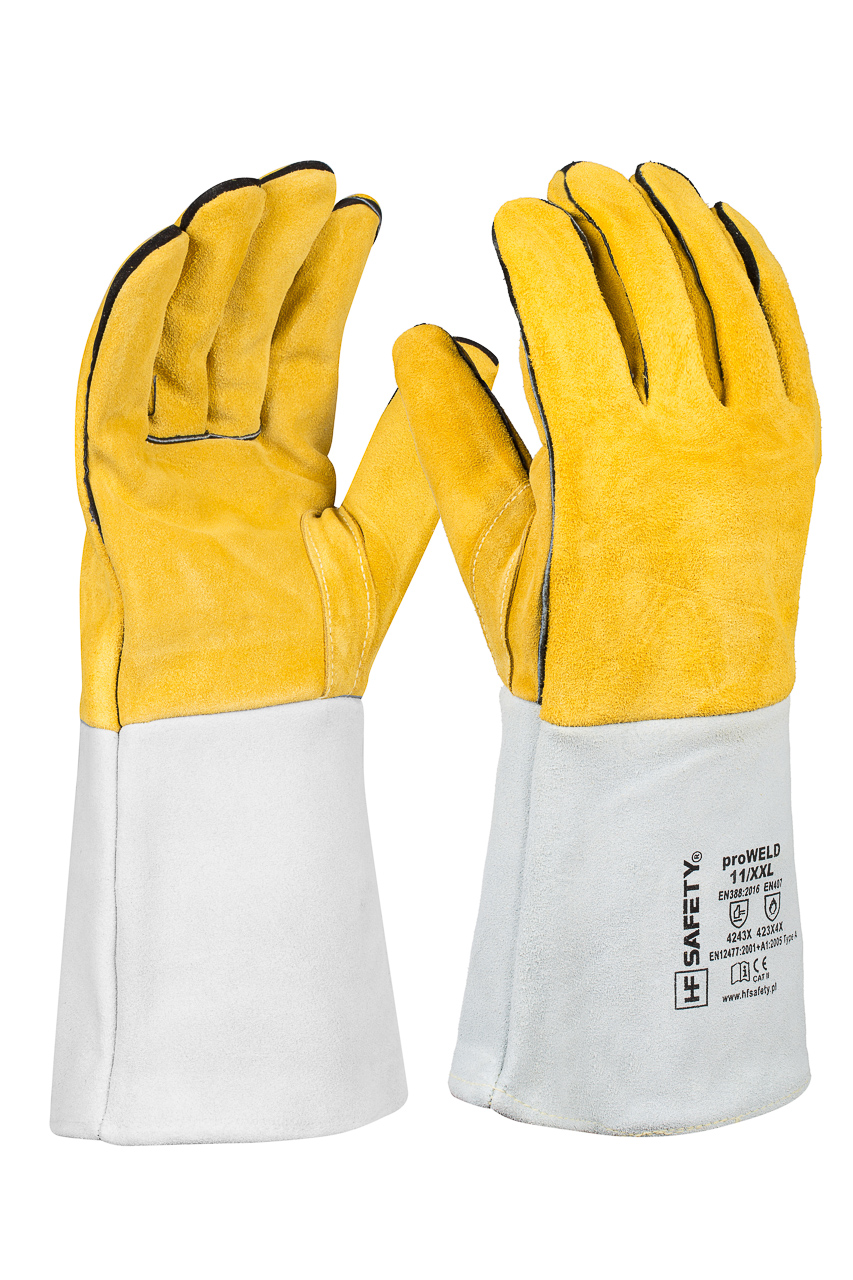 In accordance with the applicable provisions of the Labour Code, the employer is obliged to ensure the employee’s safety and health protection in every aspect related to work, while the employee is obliged to use personal protective equipment provided by the employer. These measures include, m.in example, protective gloves. Gloves are the most commonly used personal protective equipment. The reason – the employee’s hands are the most exposed to harmful factors. Depending on the type of hazard, various hand protections are used to protect them – for work with glass and sharp objects, for welding gloves. These include, m.in, proWELD from HF SAFETY. These gloves are made of the highest quality cowhide split, finished with a lining inside. Extremely durable, sewn with strong, temperature-resistant thread, they have additional reinforcement at the base of the thumb and protect the seams from burning out the core. Thanks to high-quality proWELD materials, they guarantee a perfect fit in the hand and the highest comfort of use. Finished with a long, stiffened cuff, they protect both the welder’s hands and forearms. They work well at workstations where protection against temperature and spatter is required metal, m.in. welding of steel, aluminum and other metals, grinding and machining