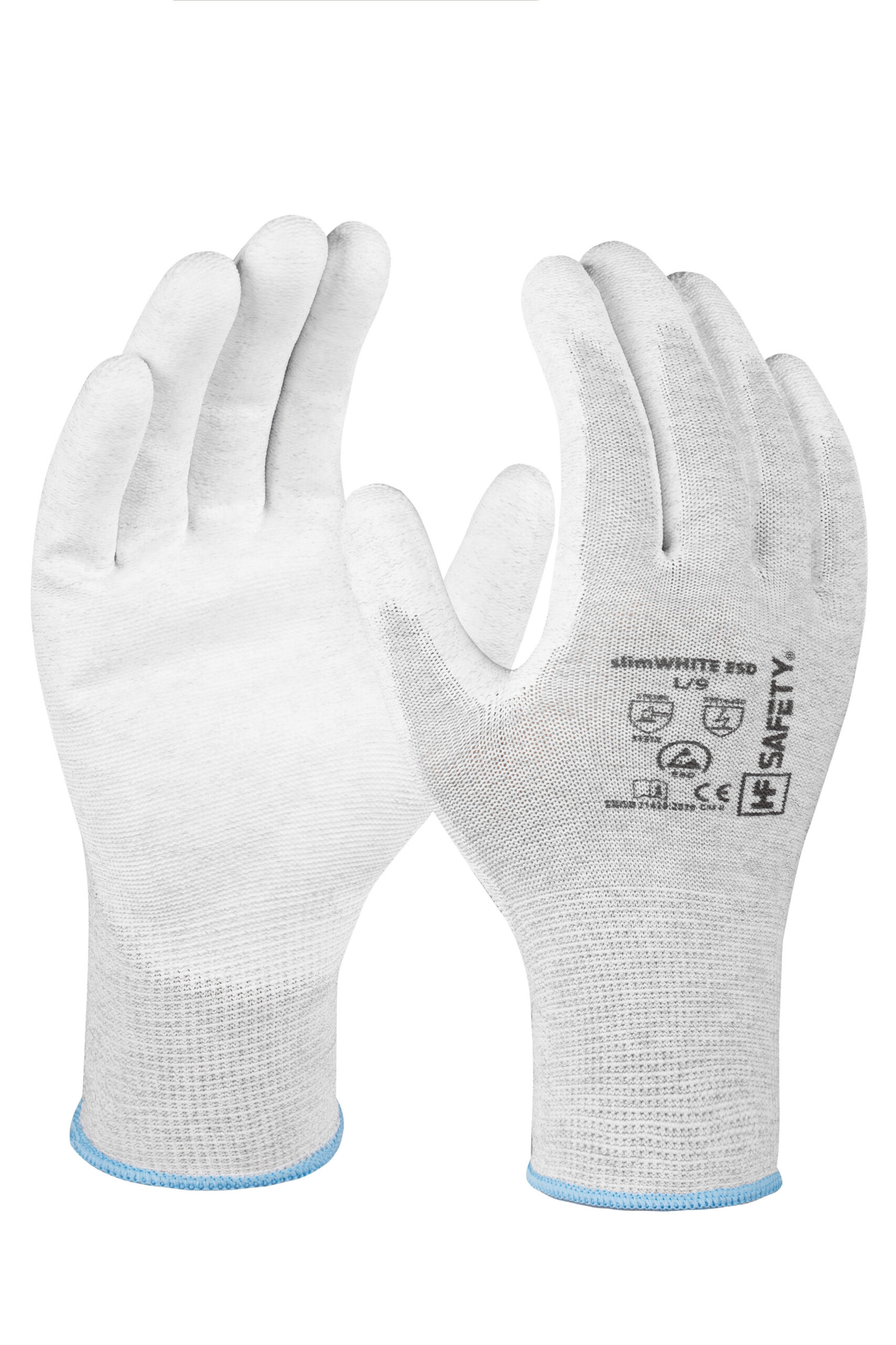 Rękawice ochronne slimWHITE ESD marki HF Safety. Rękawice o właściwościach antystatycznych. Rękawice z nakropieniem. Lekkie, elastyczne i wygodne.