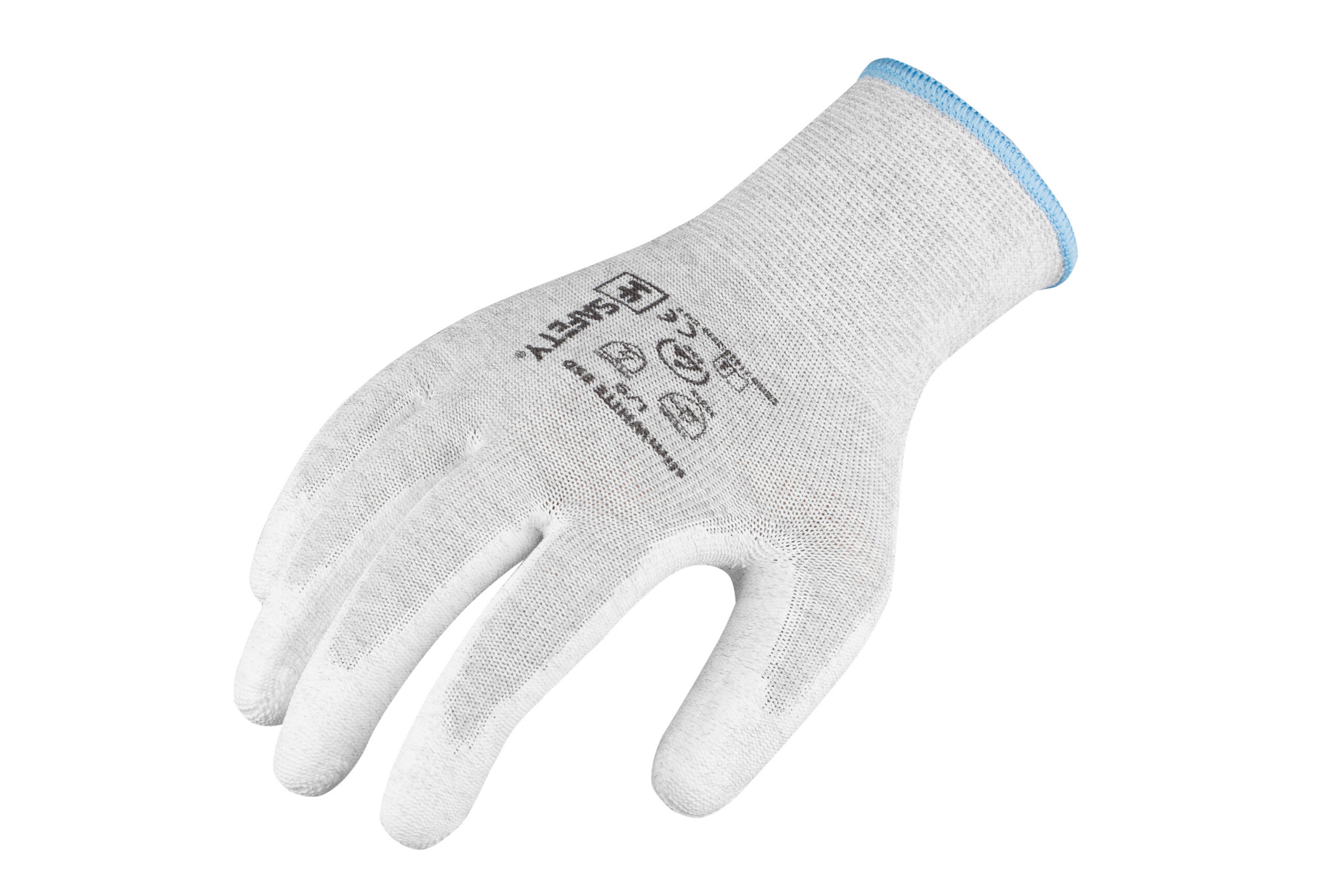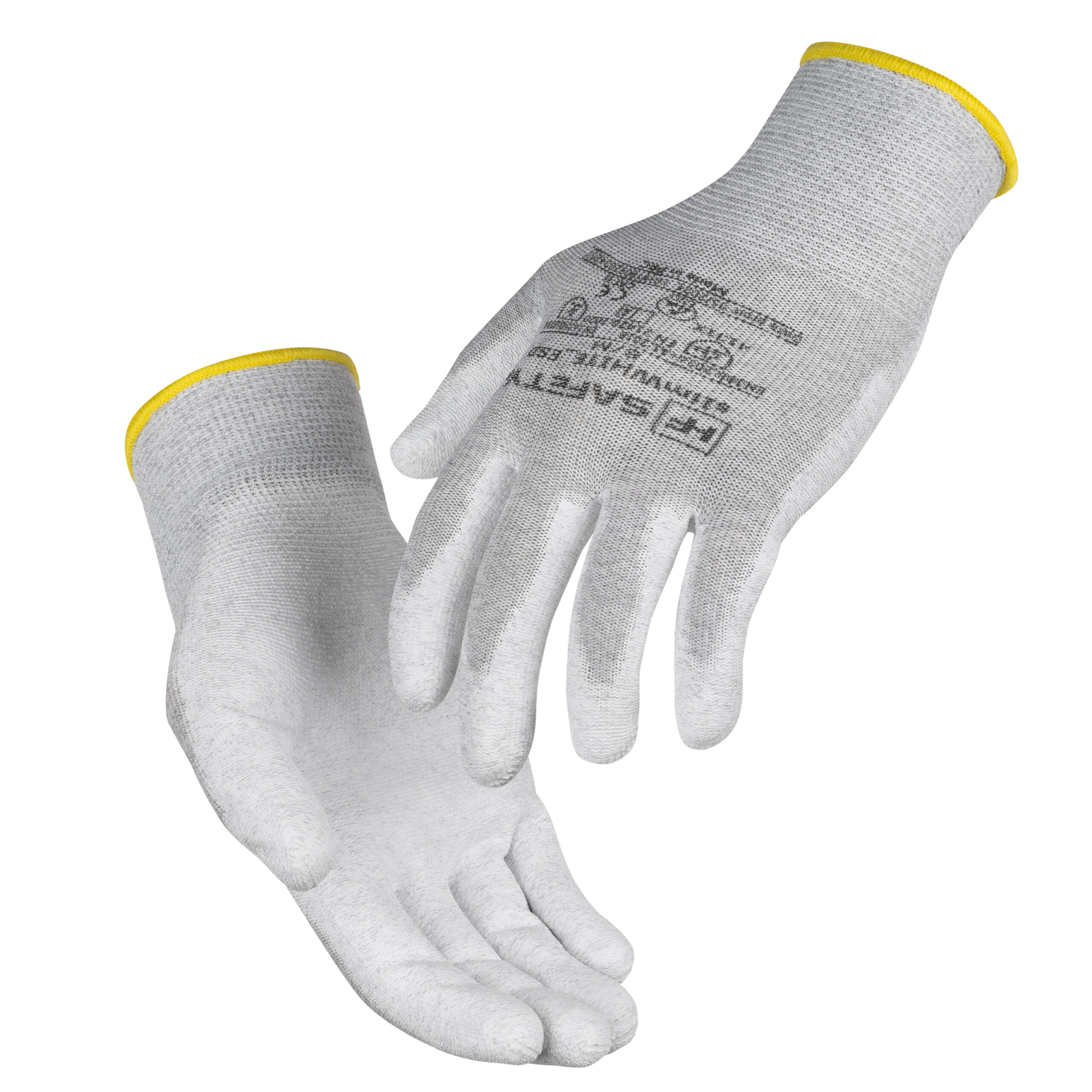 Rękawice bezszwowe, wykonane z miękkiej dzianiny nylonowej z dodatkiem włókna węglowego, powlekane poliuretanem, zapewniają właściwości antystatyczne zgodne z normą EN 16350:2014. Lekkie, wygodne i rozciągliwe, dopasowują się do dłoni, gwarantując dobry chwyt i czucie przedmiotu. Zawierają śladowe ilości DMF.