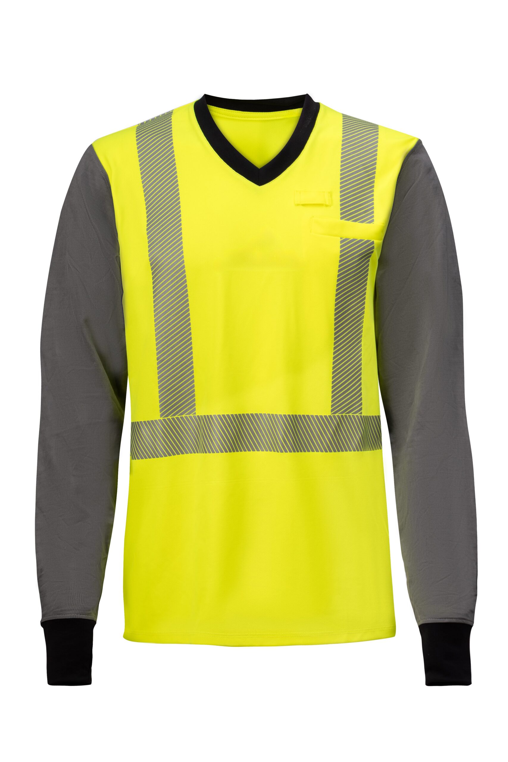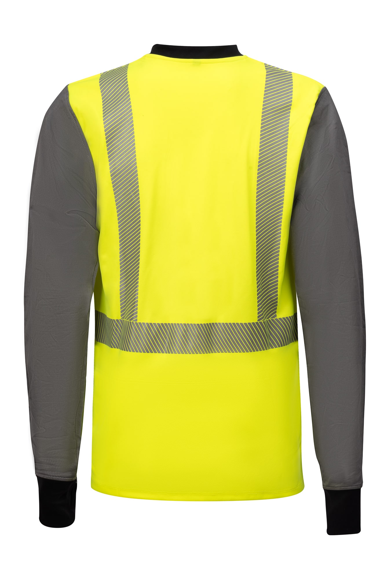 Przód oraz tył bluzy wykonano z włókna COOLMAX w stonowanej kolorystyce, co daje komfort noszenia i trwałość materiału. Bluza antyprzecięciowa została wyposażona w elementy odblaskowe z przodu i z tyłu, co zwiększa widoczność pracownika w warunkach ograniczonego oświetlenia – idealne rozwiązanie do pracy w halach, magazynach czy na zewnątrz.