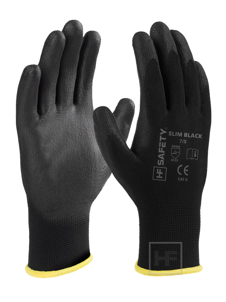 Rękawice dziane SLIM BLACK, powlekane poliuretanem, rękawice odporne na ścieranie, do prac w suchym środowisku oraz ogólnych prac mechanicznych. Dostępne w HF Safety! Wejdź i dowiedz się więcej!