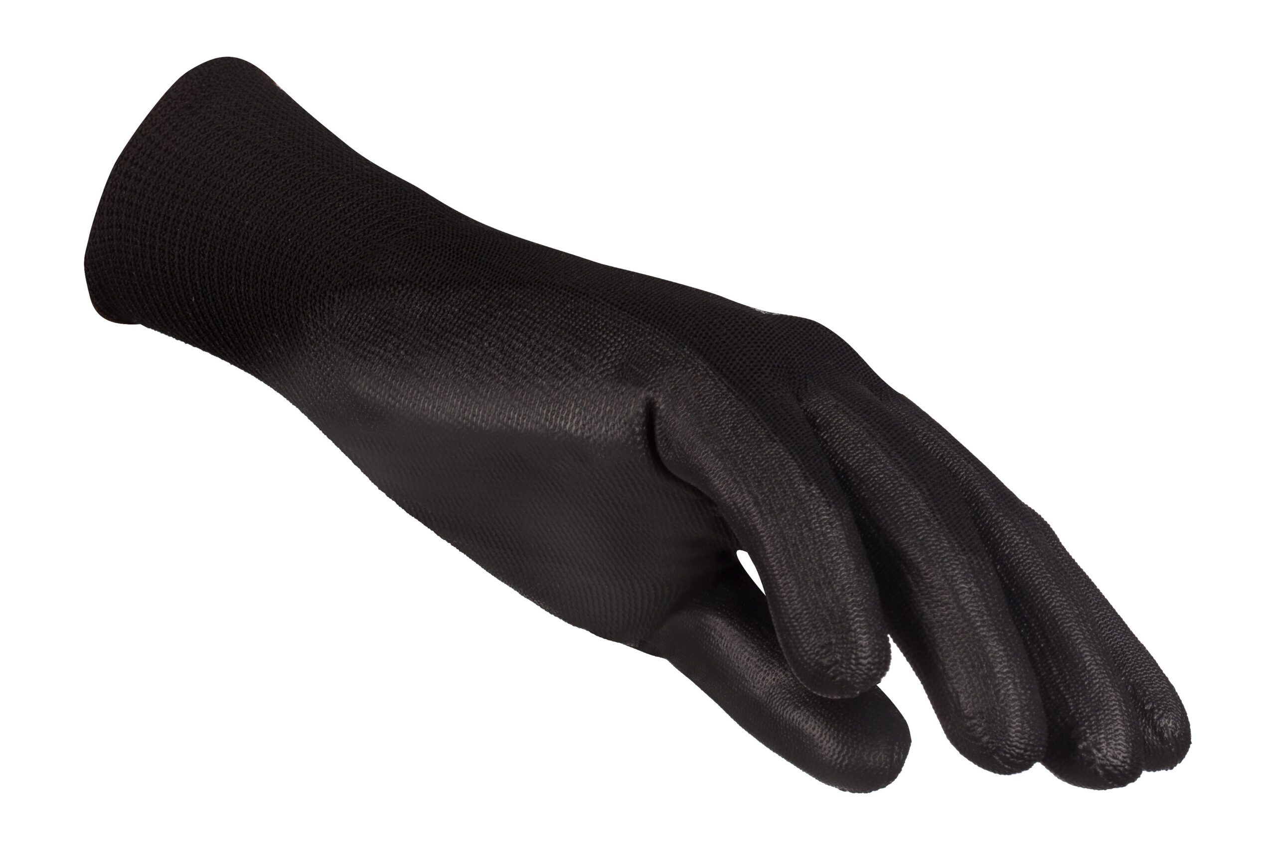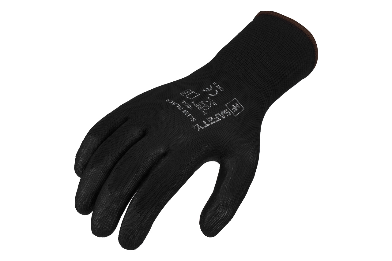 Dziane rękawice bezszwowe, zakończone elastycznym ściągaczem. Lekkie, wygodne i rozciągliwe, idealnie dopasowują się do dłoni. Na części chwytnej powlekane poliuretanem. Cienkie, zapewniają doskonałe czucie trzymanego przedmiotu. Charakteryzują się dobrą odpornością na ścieranie i rozdarcie. Czarny kolor rękawic maskuje zabrudzenia i zwiększa widoczność jasnych elementów.