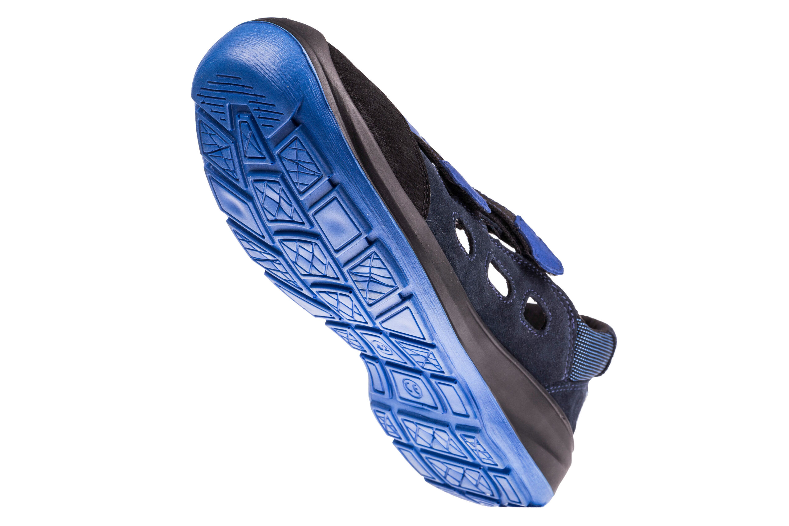 Sandały ze skóry welurowej. Niezwykle lekkie, wykonane z użyciem oddychających komponentów, zapewniają komfort przez cały dzień. Zastosowana w procesie produkcji obuwia technologia ATF daje gwarancję długotrwałej świeżości, ochrony antybakteryjnej i przeciwgrzybicznej. Doskonałe połączenie elementów zabezpieczających z wysokiej klasy materiałami, pozwoliło stworzyć obuwie o sportowym designie, gwarantujące jednocześnie ochronę i wygodę dla stóp. Dzięki temu sandały ACTIVO sprawdzają się w wielu środowiskach pracy. Dostępne w wersjach S1, S1P.