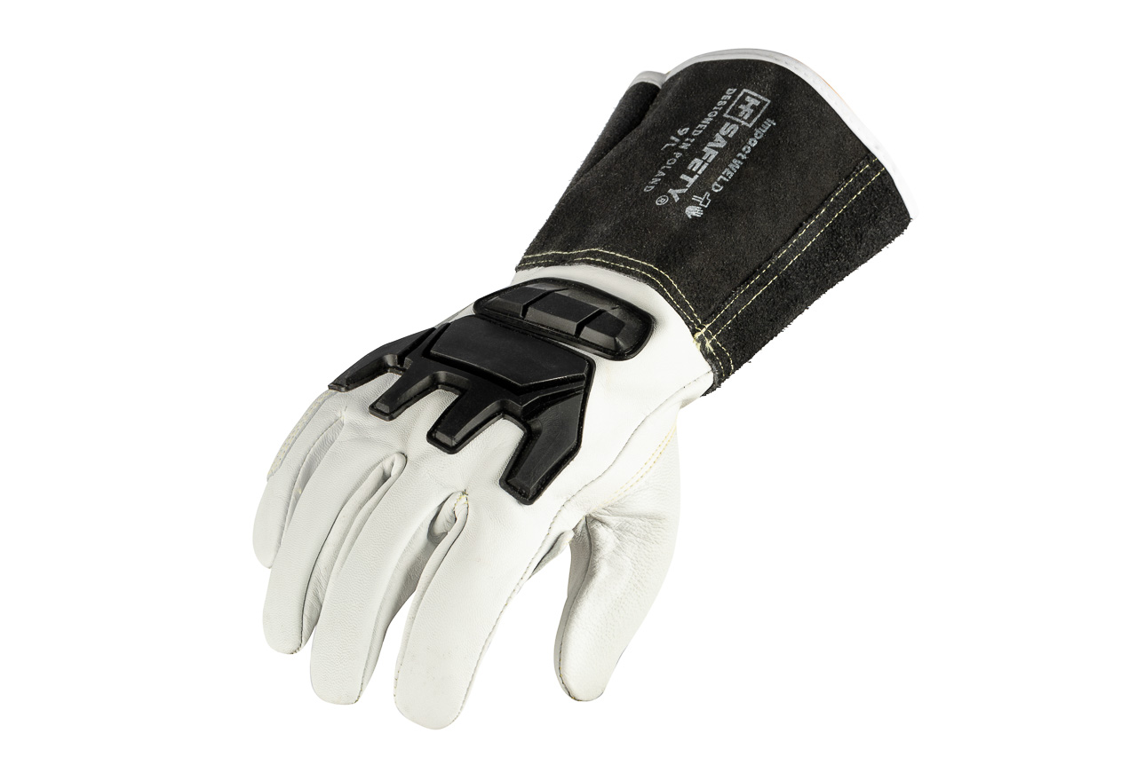 Model impactWELD wyróżnia się solidną konstrukcją, w której na grzbiecie dłoni zastosowano elementy TPR (termoplastyczny materiał ochronny) skutecznie absorbujące uderzenia i chroniące przed obrażeniami mechanicznymi. Dodatkowe poduszki ochronne w strefie chwytnej zwiększają bezpieczeństwo dłoni podczas manipulowania narzędziami i ciężkimi przedmiotami, a umiejscowione wzmocnienia poprawiają trwałość rękawic i ich odporność na uszkodzenia.