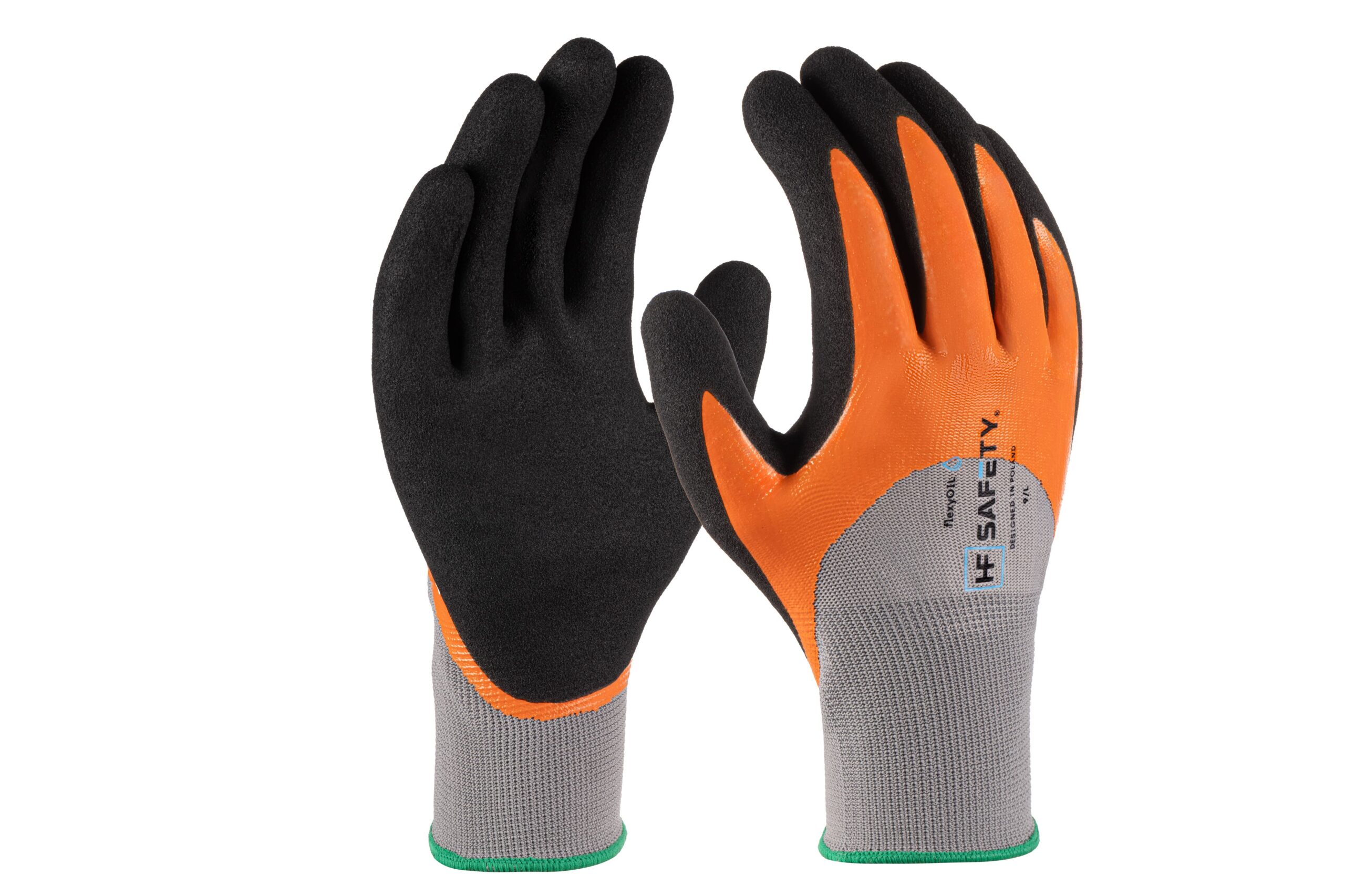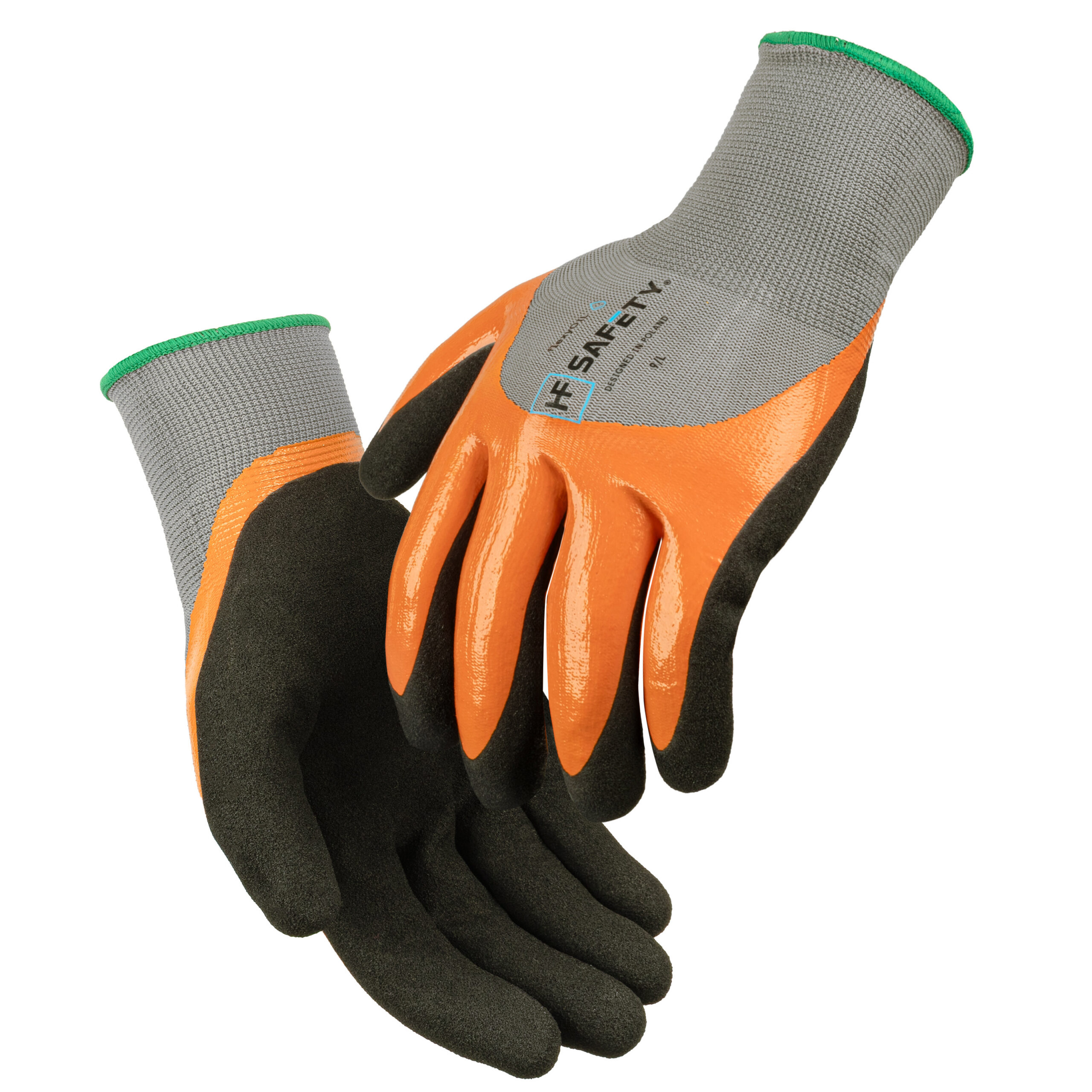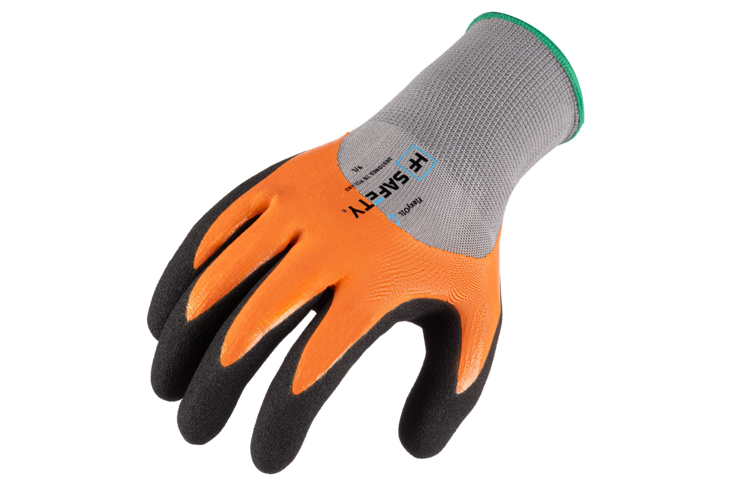 Rękawice flexyOIL marki HF SAFETY, rękawice z dwuwarstwową powłoką nitrylową. Dziane rękawice z dwuwarstwową powłoką nitrylową – idealne rozwiązanie do lekkich zastosowań wymagających dobrego chwytu w środowiskach zaolejonych.