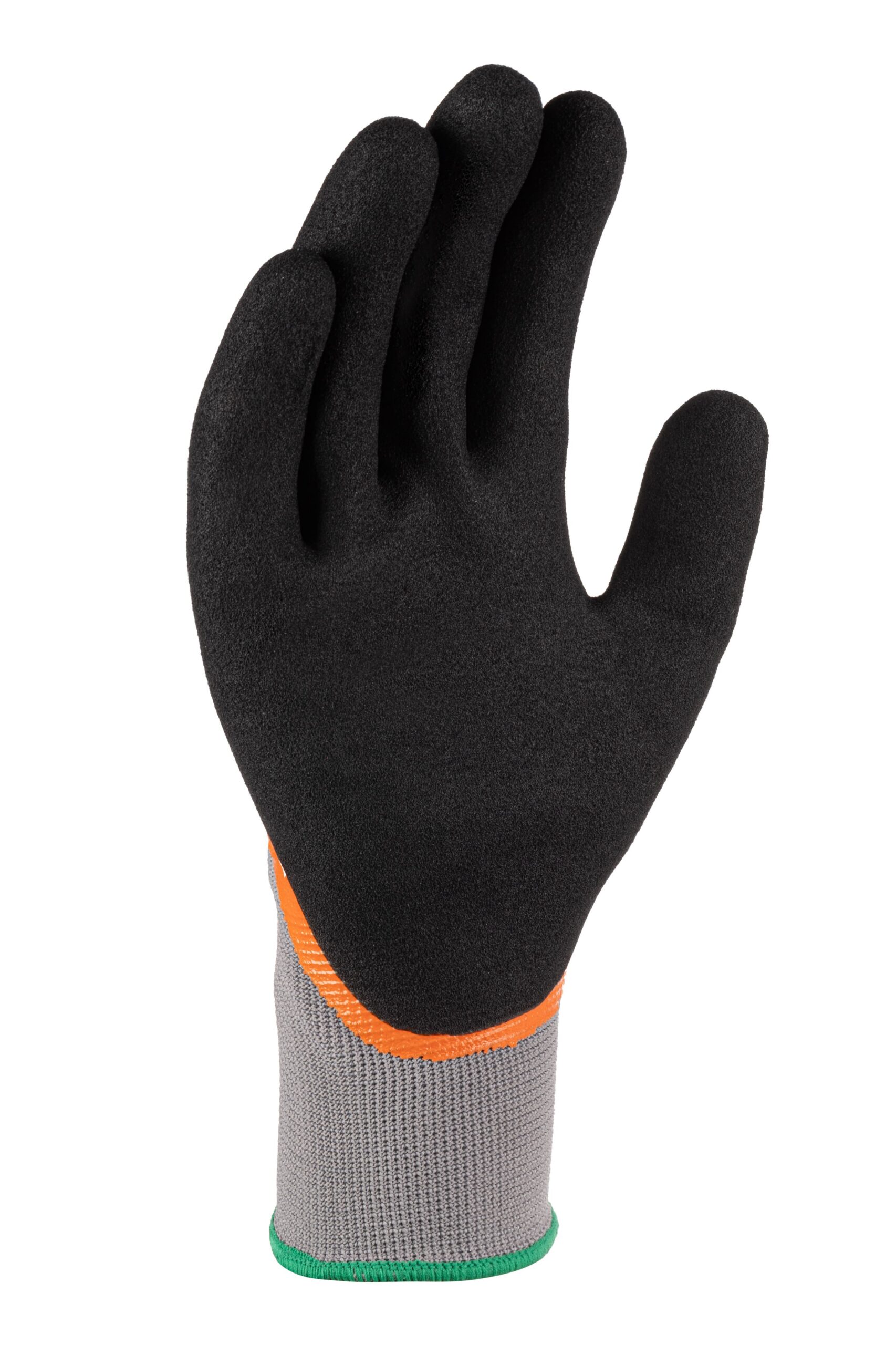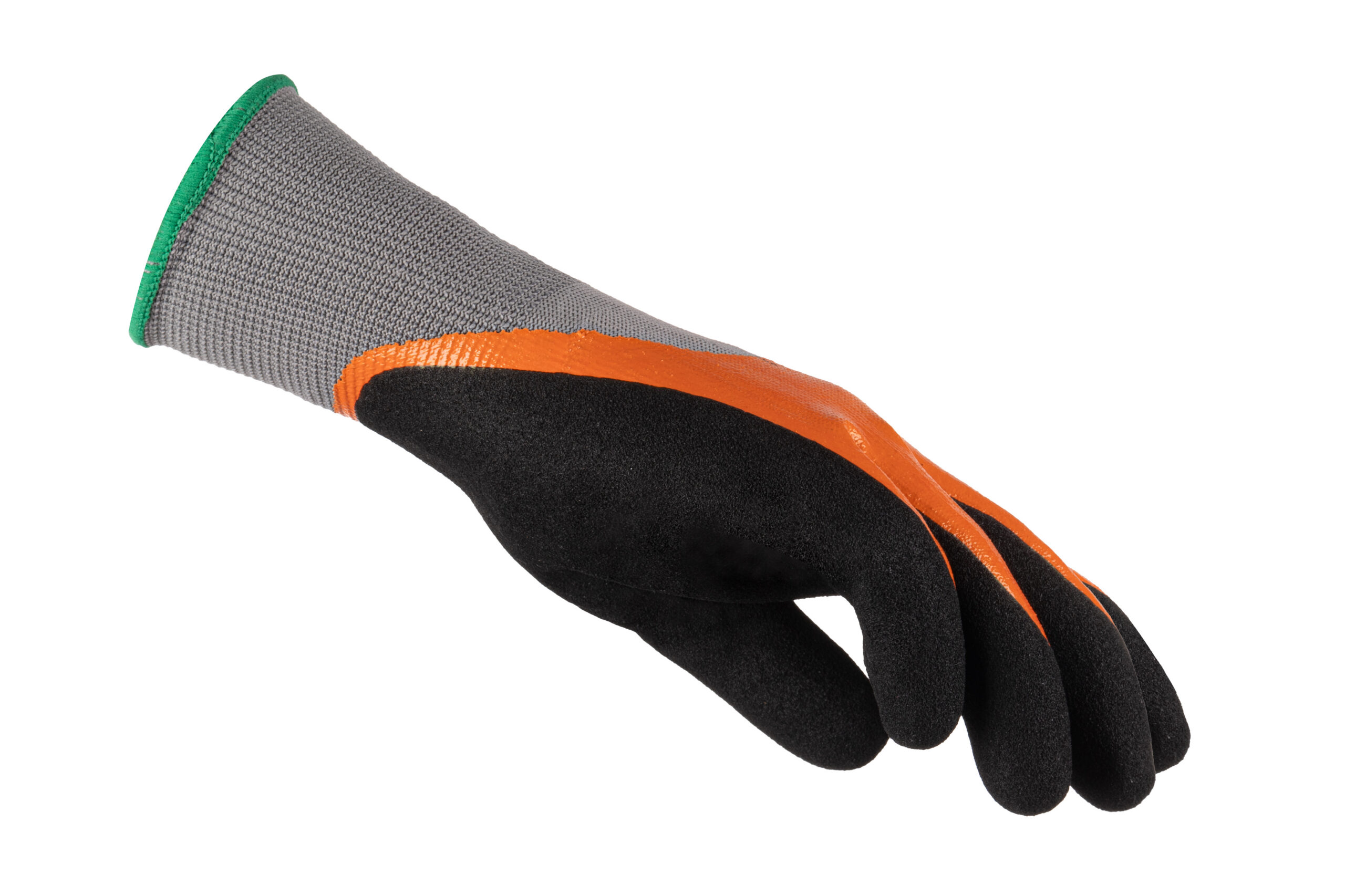 • Odporność na przesiąkanie cieczy: konstrukcja rękawic chroni przed przenikaniem cieczy, co jest nieocenione podczas pracy z różnego rodzaju cieczami przemysłowymi i olejami.