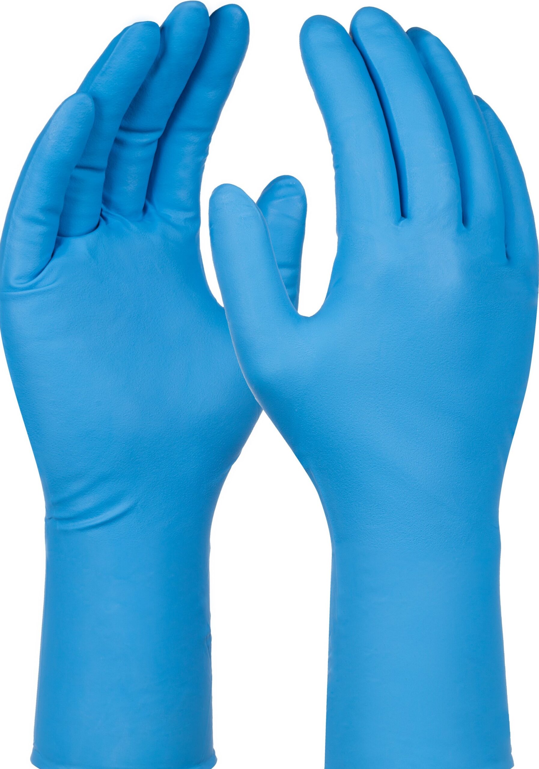 Rękawice oburęczne wykonane w 100% z nitrylu. Bezpudrowe, zapewniają doskonałą ochronę przed kontaktem z cieczami i materiałami niebezpiecznymi. Wśród rękawic jednorazowych wyróżniają się wyjątkową odpornością na chemikalia. Elastyczne, gwarantują doskonały chwyt. Chlorowane, aby ułatwić zakładanie i zdejmowanie, mają wywijany mankiet, który dodatkowo zabezpiecza przed ewentualnymi wyciekami i kapaniem substancji chemicznych. Model dopuszczony do kontaktu z żywnością.