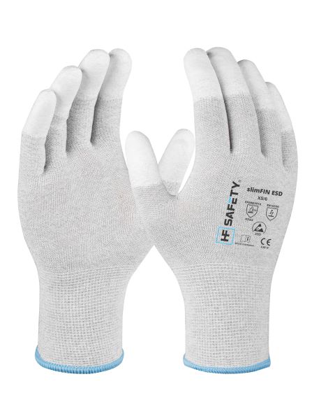 Rękawice ochronne slimFIN ESD marki HF SAFETY. Rękawice chroniące przed efektem ESD. Ultralekkie rękawice o właściwościach antystatycznych. Wykonane z miękkiej dzianiny, z dodatkiem włókna węglowego, bezszwowe, zapewniają ochronę ESD.