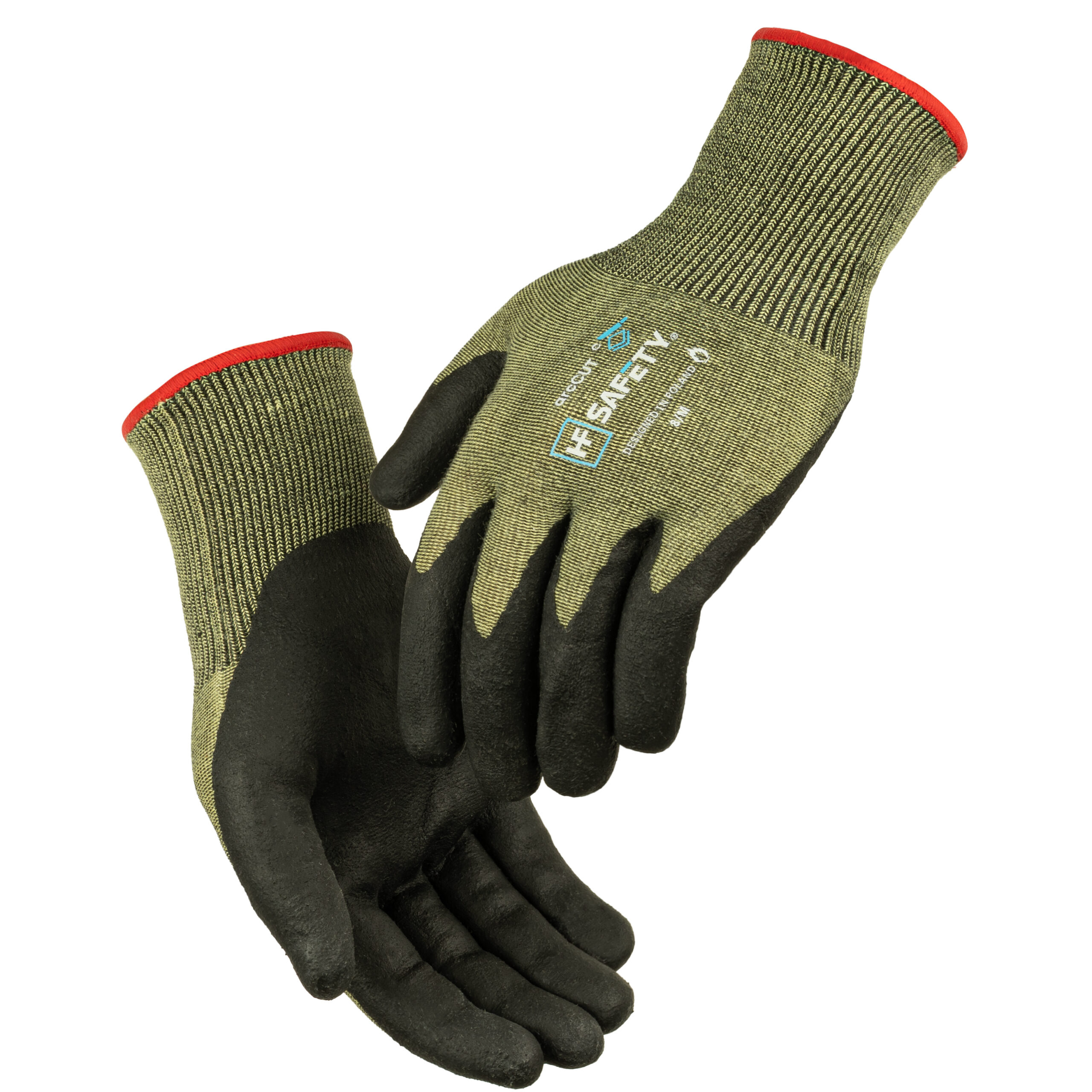Wśród dostępnych na rynku środków ochrony indywidualnej modeli wyróżniają się arcCUT marki HF SAFETY. To odporne na przecięcie rękawice chroniące przed łukiem elektrycznym wykonane z trudnopalnych włókien, chronią skórę przed ekstremalnym ciepłem (POZIOM 4). Ich struktura gwarantuje także ochronę przed przecięciami, co pozwala bezpiecznie wykonywać m.in. prace serwisowe. Dziana konstrukcja (ścieg18) gwarantuje idealne dopasowanie do dłoni i zapewnia swobodę ruchów, a ergonomiczny kształt pozwala na komfortową pracę przez wiele godzin bez utraty zręczności. Dzięki powleczeniu z miękkiej mikropianki arcCUT oferują pewny chwyt przedmiotu. Model zaprojektowano nie tylko do ochrony przed wysoką temperaturą, sprawdza się on przede wszystkim jako ochrona rąk pracowników wykonujących czynności przy bateriach do aut elektrycznych. Rękawice arcCUT spełniają normy EN ISO 21420:2020, EN 388:2016+A1:2018, EN 407:2020 oraz ASTM F2675/F2675M:2023, osiągając poziom ochrony ATPV Arc 1 (6,3 cal/cm²), co potwierdza ich skuteczność w ochronie przed łukiem elektrycznym.