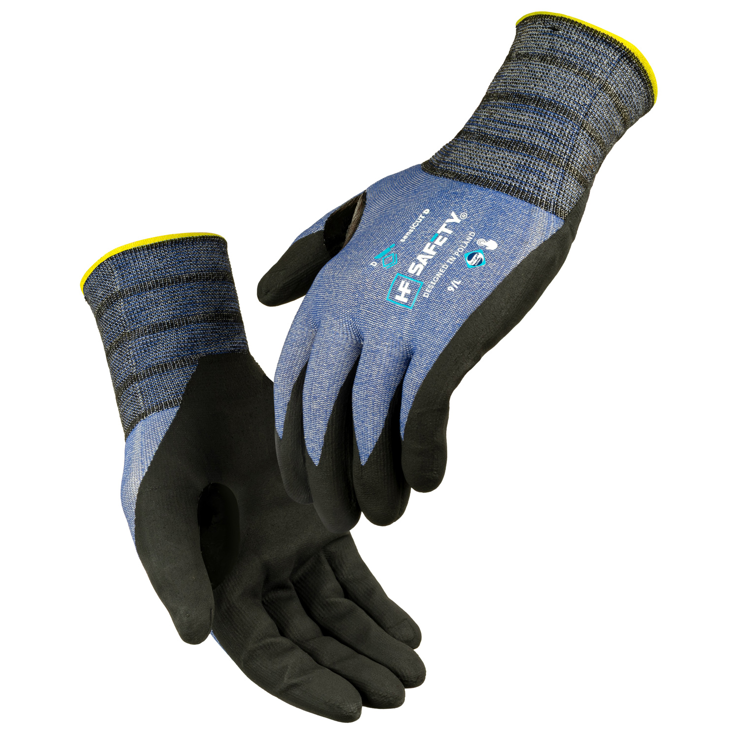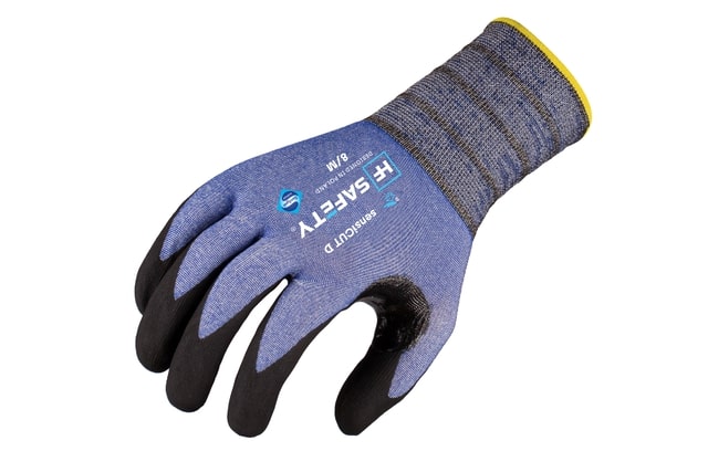 Rękawice antyprzecięciowe sensiCUT D. Rękawice HF SAFETY chroniące przed przecięciem, kompatybilne z ekranami dotykowymi. Powlekane warstwą nitrylu, gwarantują przyczepność w środowisku mokrym, suchym i zaolejonym.