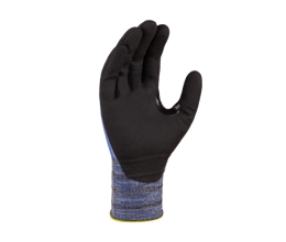 Superwytrzymałe rękawice dziane o wysokiej odporności na przecięcie (poziom D). Wygodne i lekkie (ścieg 18) idealnie dopasowują się do dłoni. Dzięki doskonałym parametrom przepuszczalności powietrza zapewniają oddychalność i najwyższy komfort użytkowania. Ich ergonomiczny kształt redukuje zmęczenie dłoni, a powleczenie z nitrylu jest gwarantem maksymalnej przyczepności w środowisku mokrym, suchym i zaolejonym. Dodatkowa powłoka między palcem wskazującym a kciukiem znaczenie zwiększa wytrzymałość rękawic, a Sanitized® zapewnia ochronę antybakteryjną. Model kompatybilny z ekranami dotykowymi.